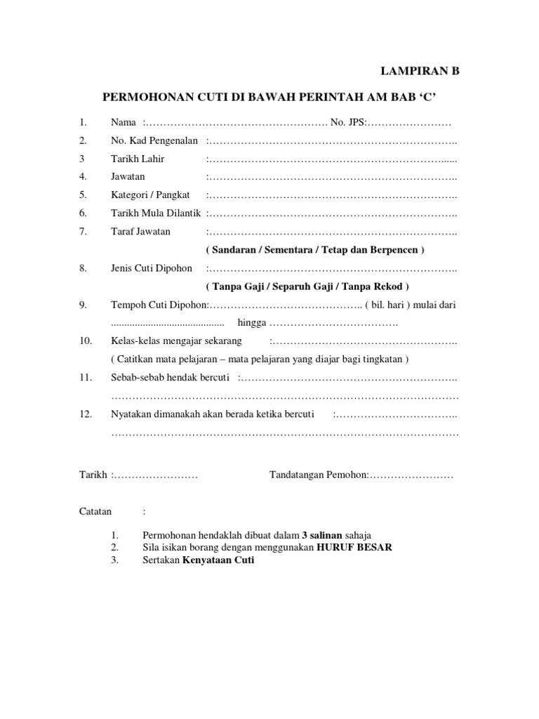 Borang Lampiran B Cuti Tanpa Gaji