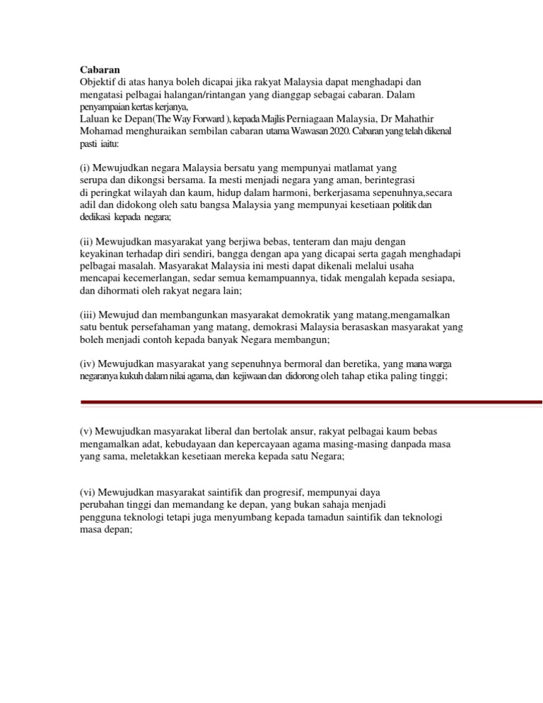 Cabaran Yang Harus Dihadapi Bagi Membolehkan Malaysia Mencapai Taraf