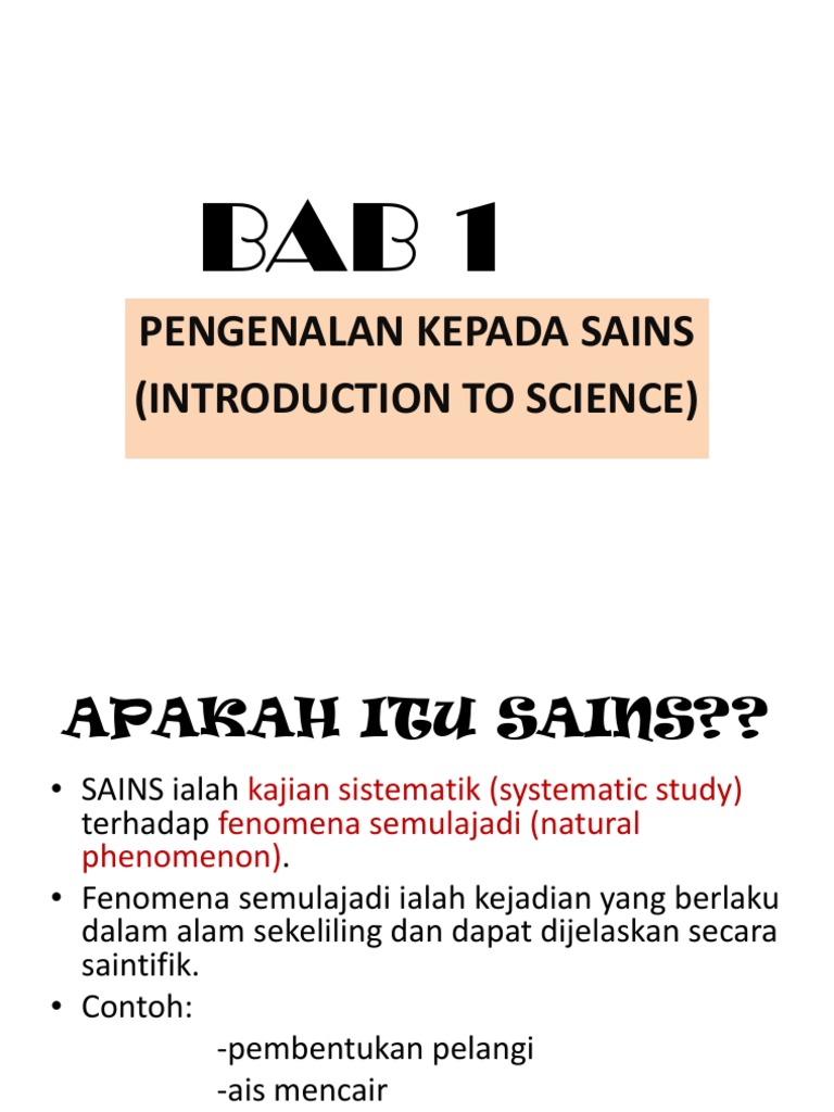 Topik 1 Pengenalan Kepada Sains Bahagian 1