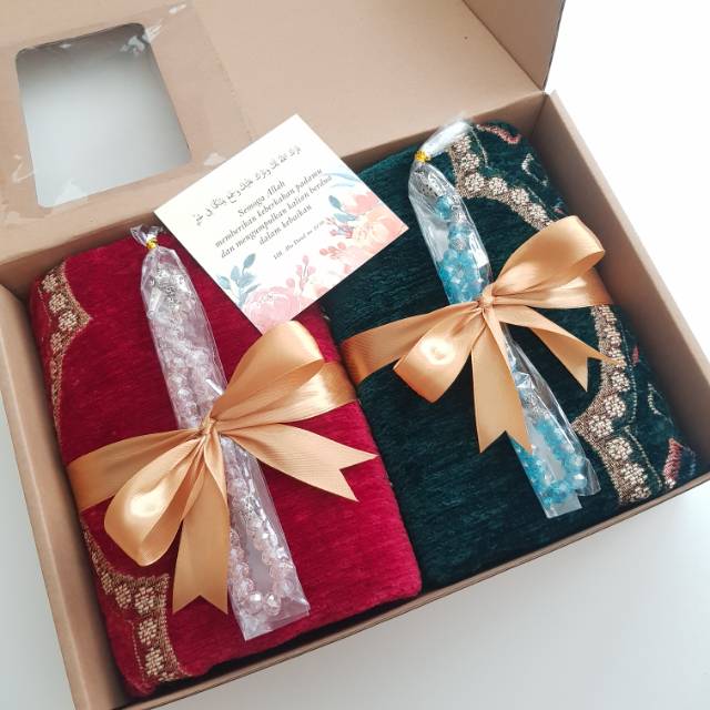 Paket Kado Pengantin Premium Sajadah Couple Tebal Dan Tasbih Kristal Hadiah Wedding Nikah Kawin Shopee Indonesia