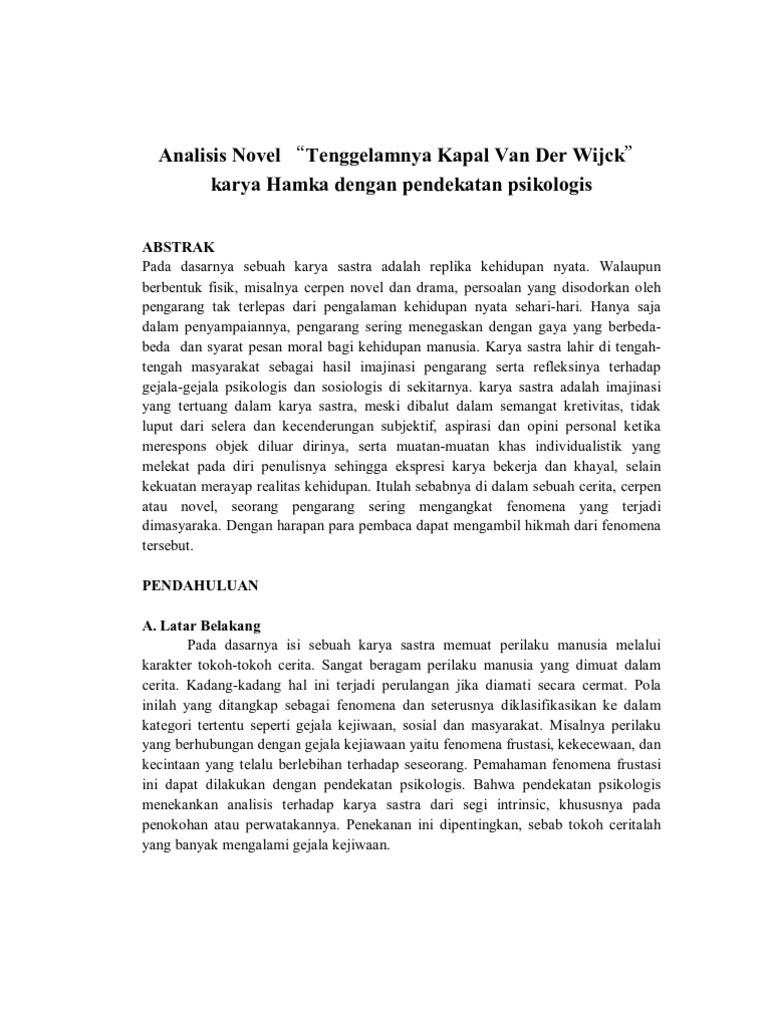 Novel Analisis Novel Tenggelamnya Kapal Van Der Wijck